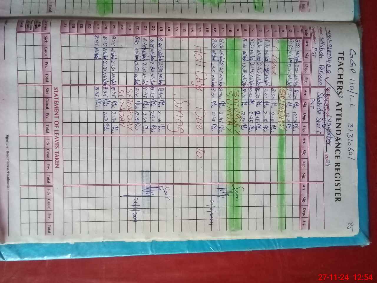 | Leave | Duty | Absent | Maternity | Medical | Ex- Pak |
