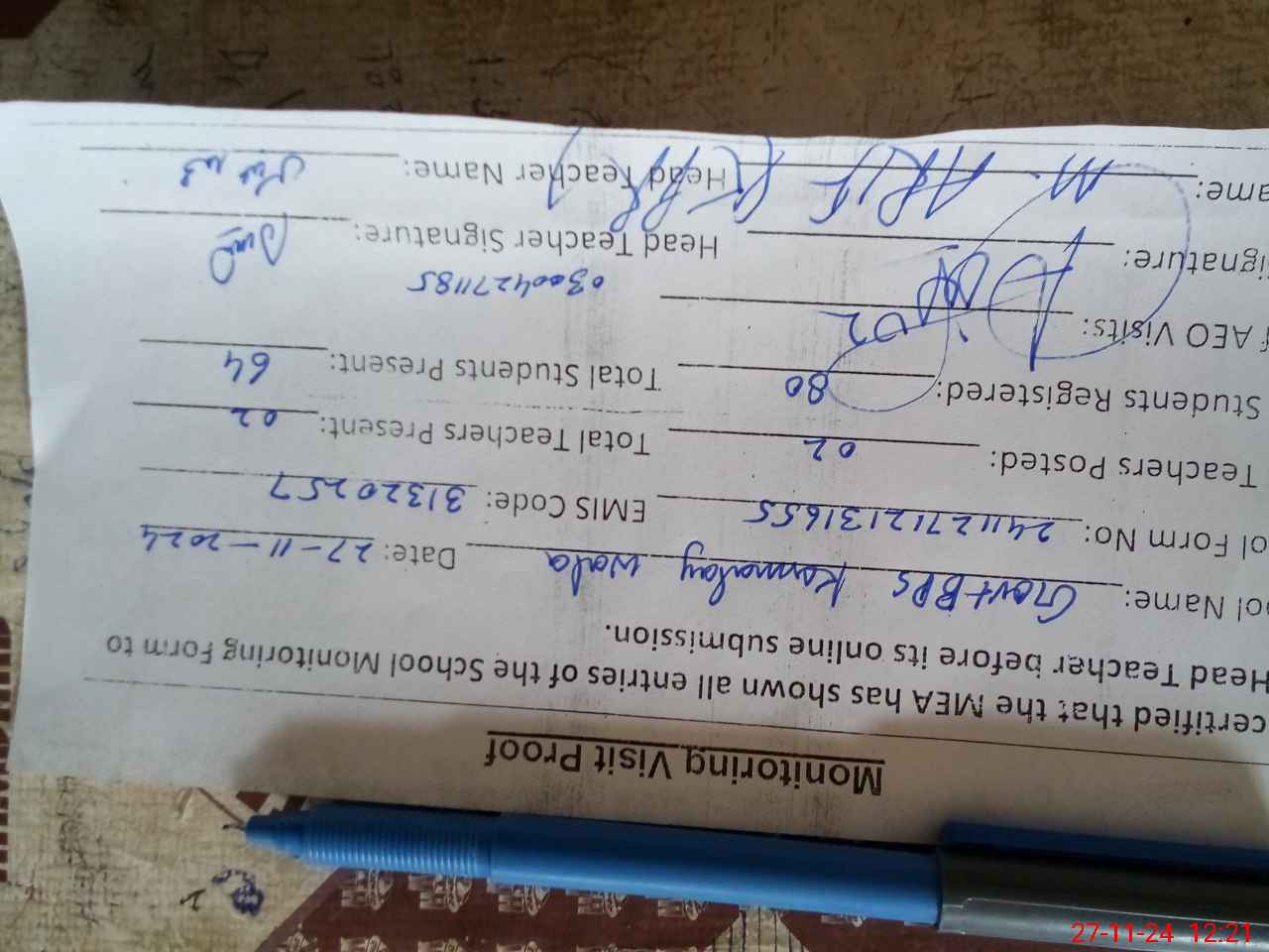 | Name: M.AB**** Designation: (School Headmaster's/Headmistress's) PST Phone/Cell Number: 03**** |