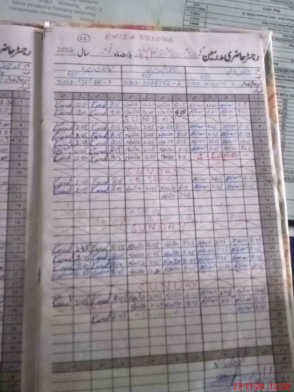 | CNIC | Full Name | Designation | R/C | Absence During Last Calender Month |