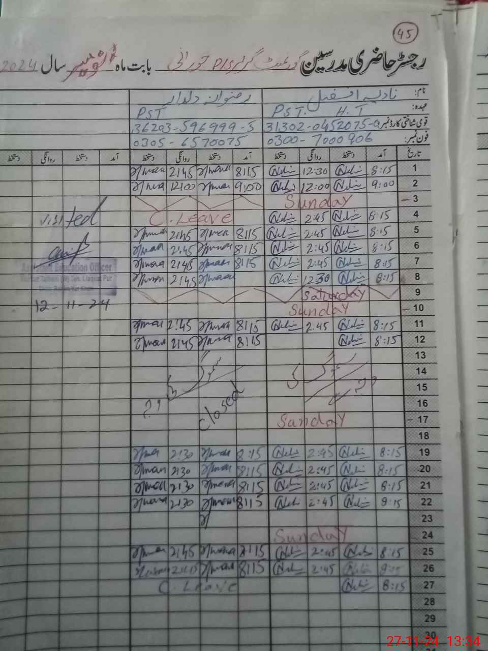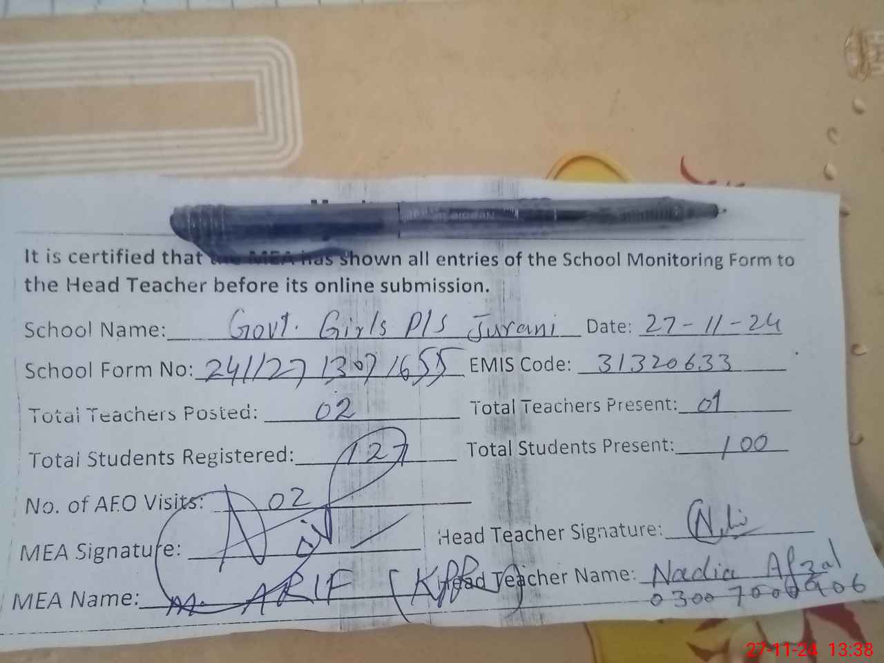 | Name: Na**** Af**** Designation: (School Headmaster's/Headmistress's) PST Phone/Cell Number: 03**** |