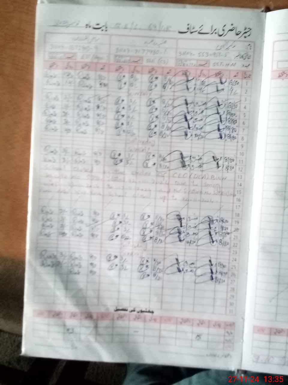 | CNIC | Full Name | Designation | R/C | Absence During Last Calender Month |