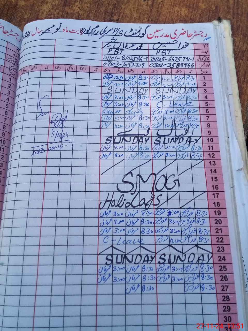 | Name: FI**** HU**** Designation: (School Headmaster's/Headmistress's) PST Phone/Cell Number: 03**** |