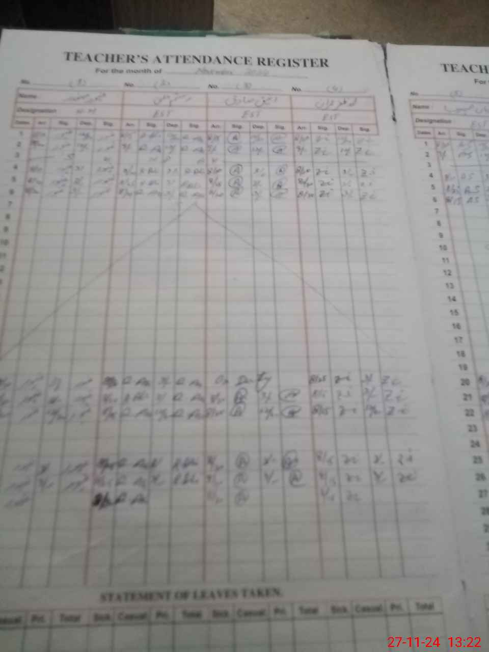 | CNIC | Full Name | Designation | R/C | Absence During Last Calender Month |