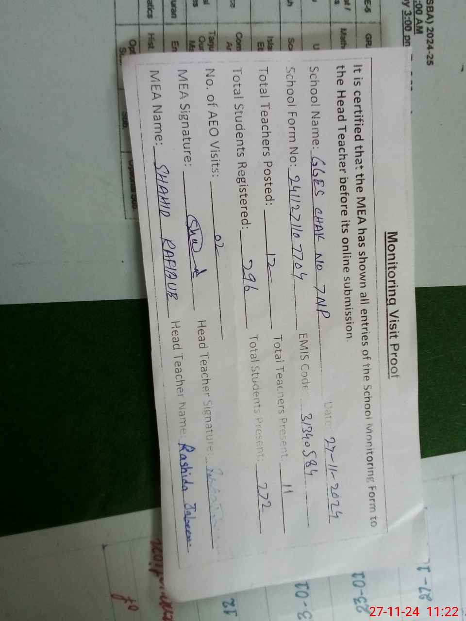 | EMIS Code: 31340584 | Name of School: GGES CHAK NO.7/NP | |||
