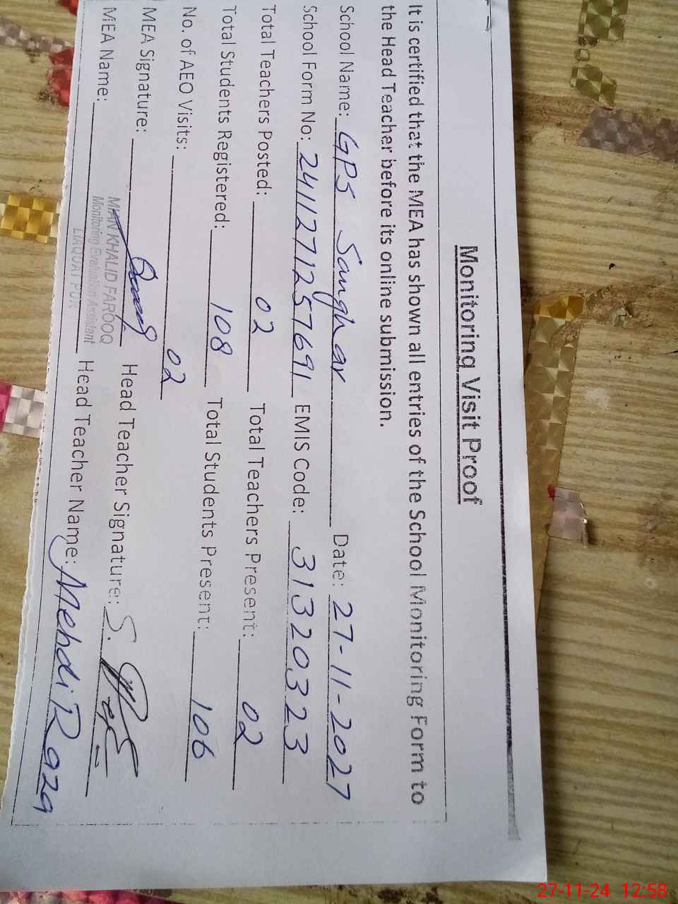 | EMIS Code: 31320323 | Name of School: GPS SANGHAR | |||