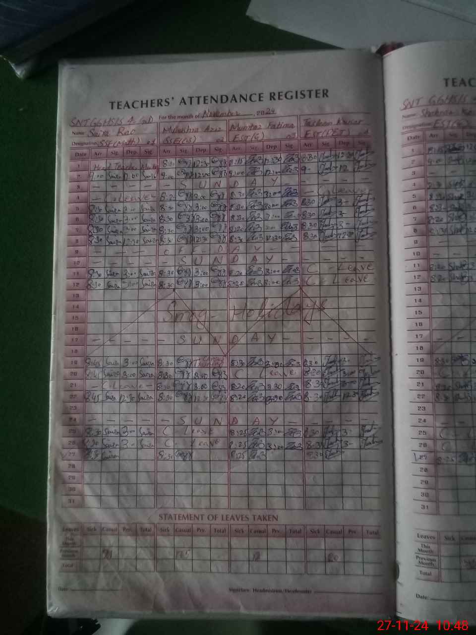 | 35**** | Sa**** Bi**** | PST | Regular | 31 | 0 | 0 | 31 | 0 | 0 | 0 | 0 | 0 | Maternity |