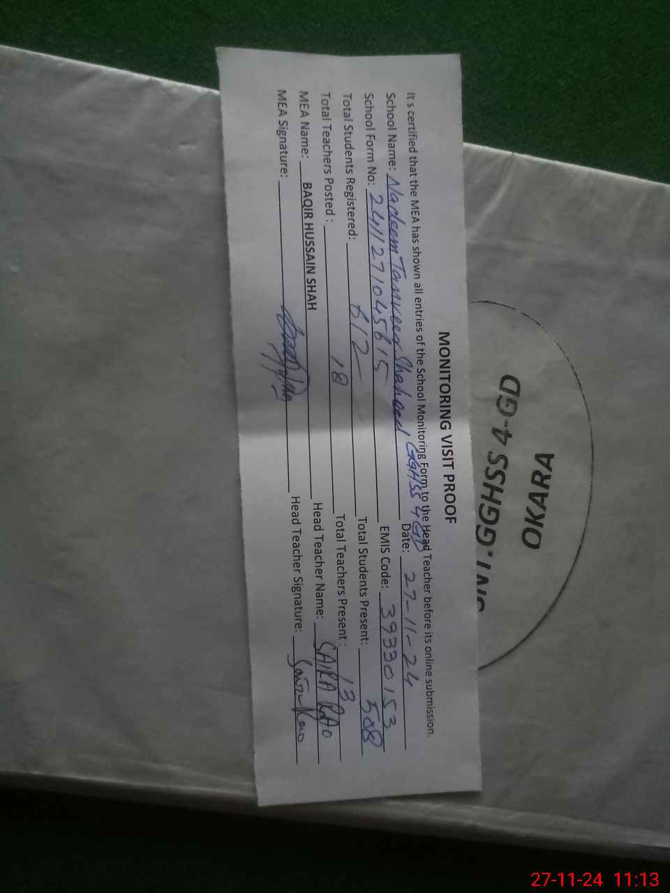 | EMIS Code: 39330153 | Name of School: NADEEM TANVEER SHAHEED GGHSS CHAK NO.4-GD | |||