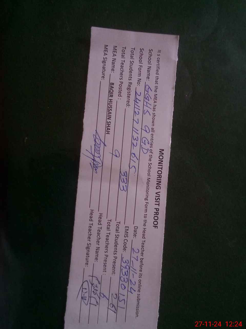 | EMIS Code: 39330151 | Name of School: GGHS CHAK NO.9/GD | |||