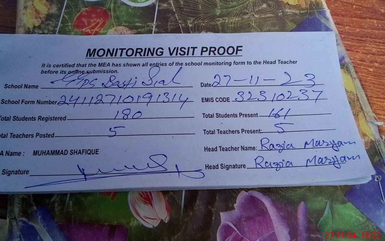 | EMIS Code: 32310237 | Name of School: GGPS BASTI SIAL | |||