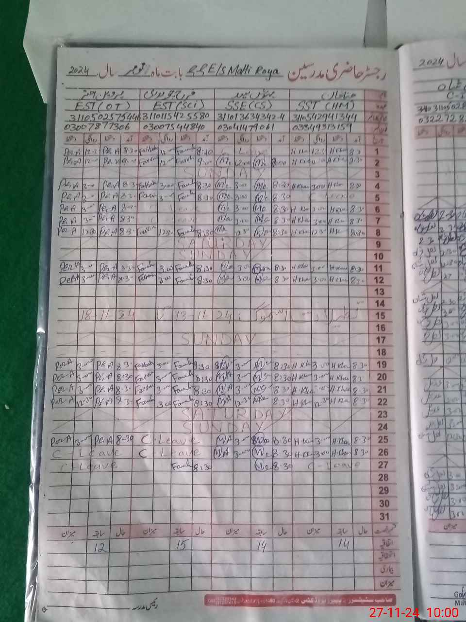 | 31**** | Hi**** Kh**** | Regular | 2 | 0 | 0 | 0 | 0 | 0 | 0 | 0 | 2 | Casual | |