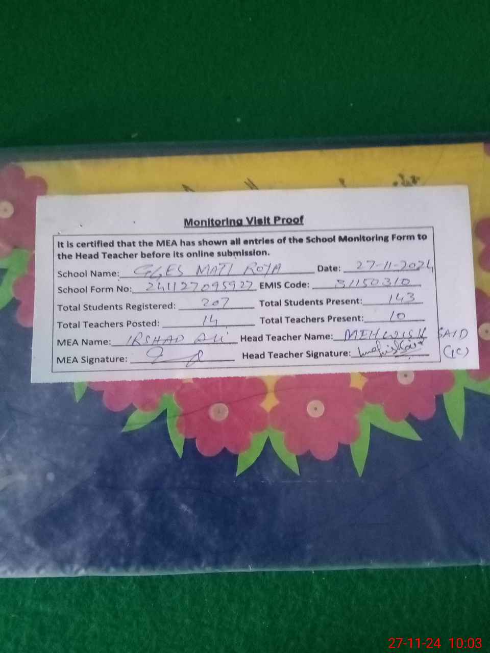 | EMIS Code: 31150310 | Name of School: GGES MATI ROYA | |||