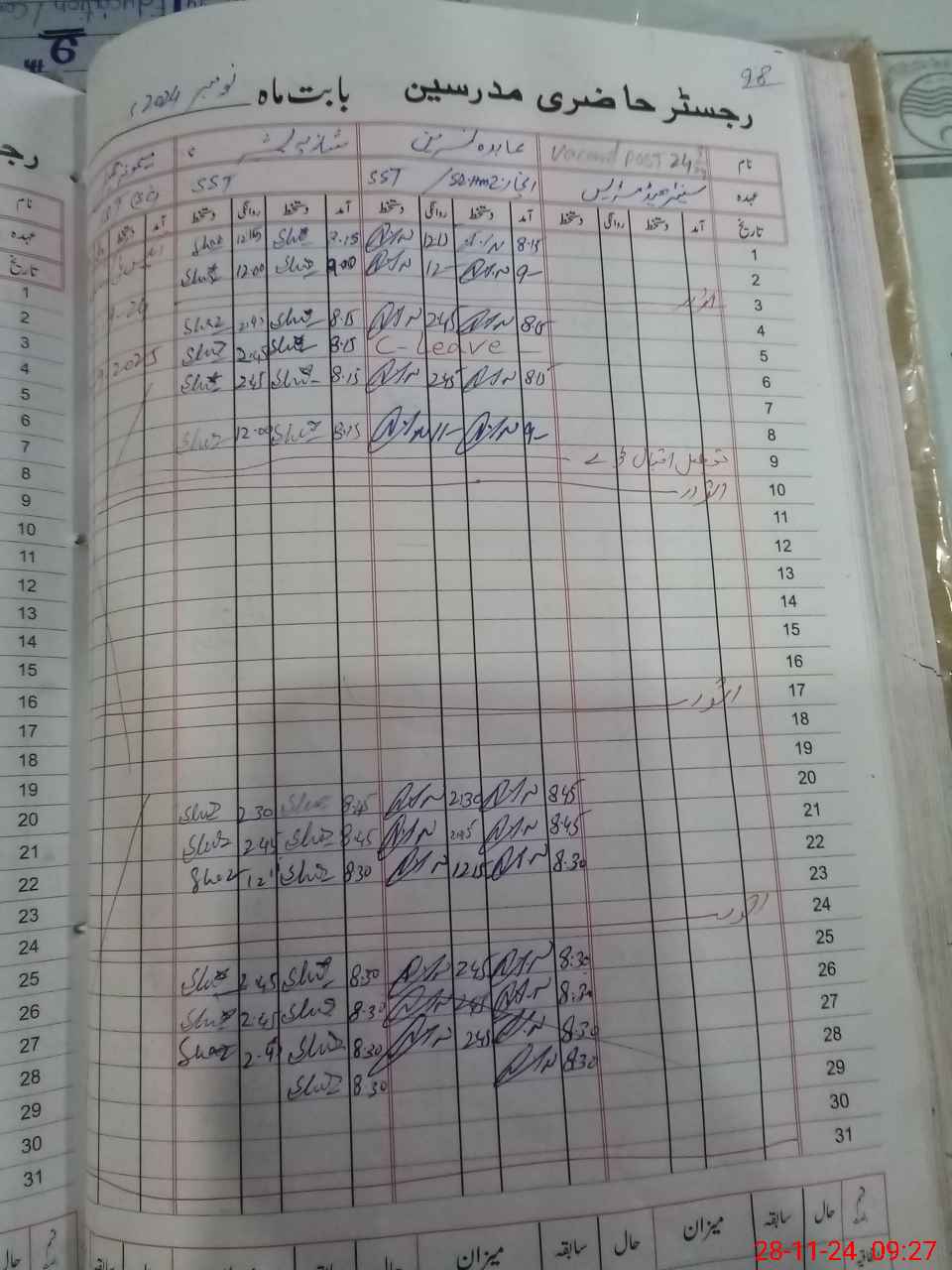 | CNIC | Full Name | Designation | R/C | Absence During Last Calender Month |