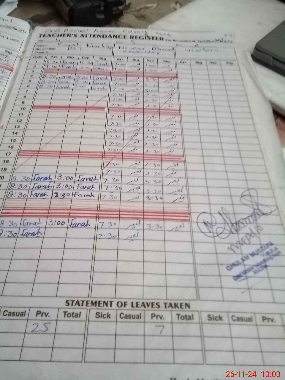 | Name: SA**** SH**** Designation: (School Headmaster's/Headmistress's) PST Phone/Cell Number: 03**** |