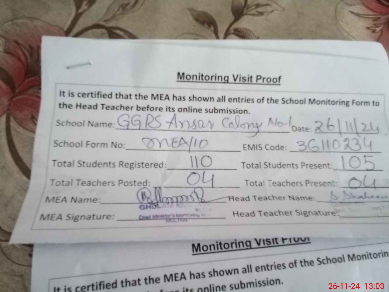 | EMIS Code: 36110234 | Name of School: GGPS ANSAR COLONY NO.1 MULTAN | |||