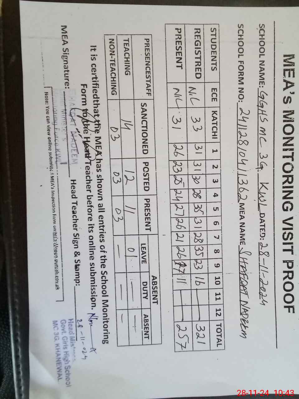 | EMIS Code: 36420365 | Name of School: GGHS MC 3-G, KHANEWAL | |||