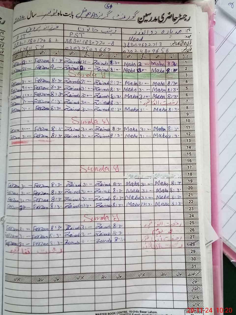 | Total no. of Classrooms: 2 No. of Classrooms Used for Teaching: 2 No. of Classrooms Storing Old Furniture, FTBs, etc: 0Comments if Any: Teacher Mrs Mah Para Zulqadar marked as absent as no approved leave shown Teacher Mrs Farzana Parveen marked as absent as no approved leave shown Teacher Mrs Zainab Khatoon marked as absent as no proof of LPR shown |