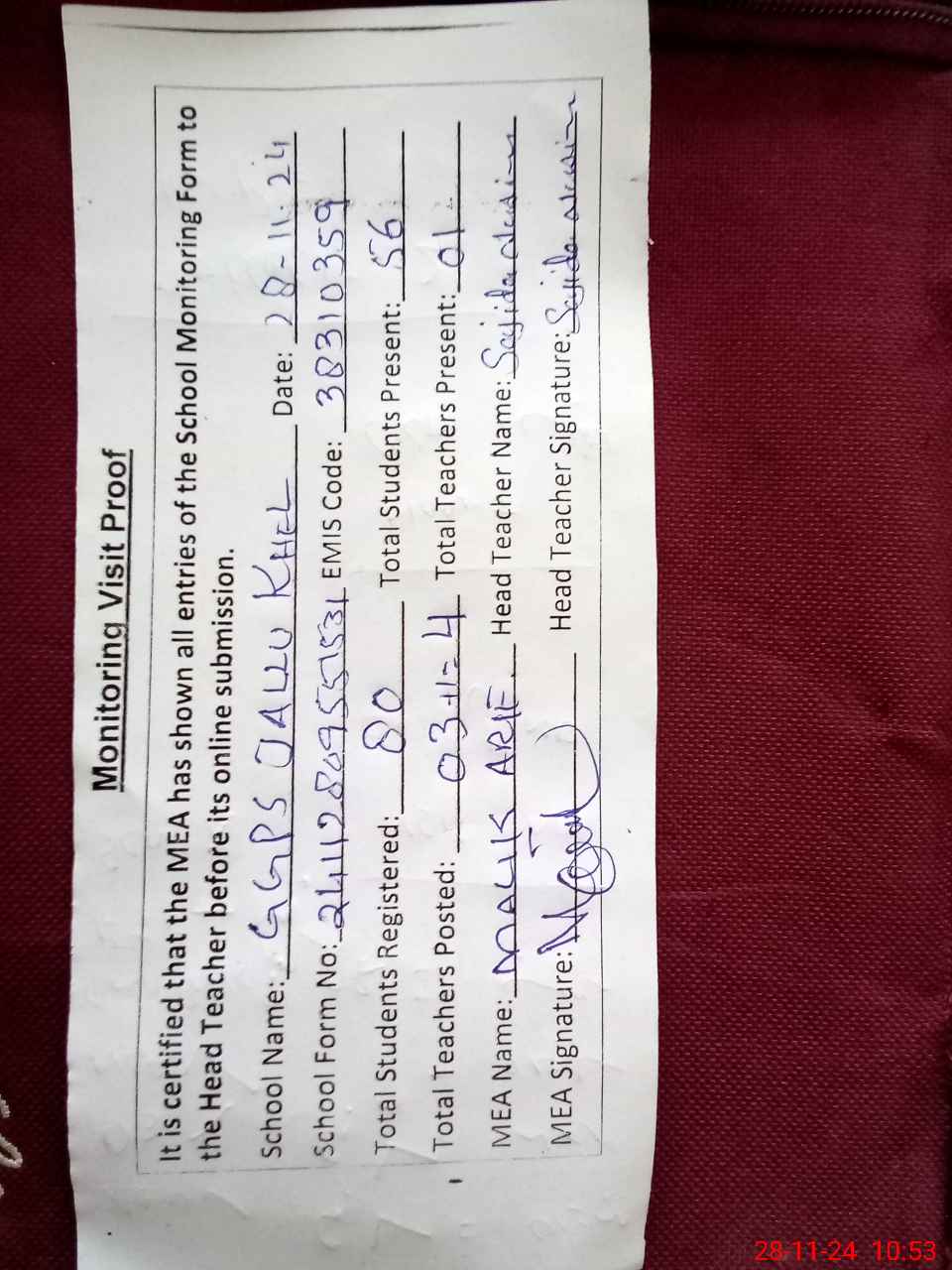 | EMIS Code: 38310359 | Name of School: GGPS JALLU KHEL | |||