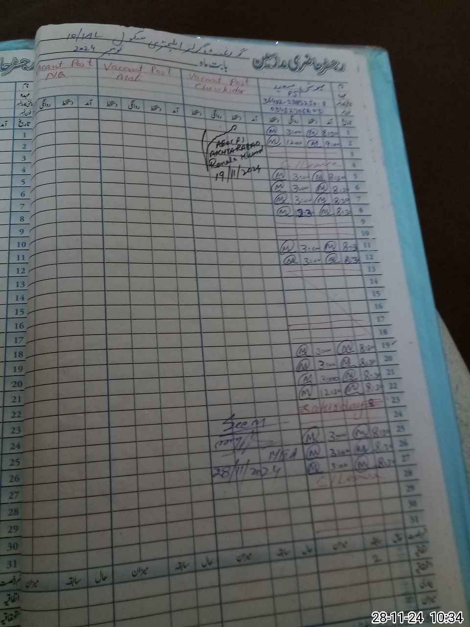 | CNIC | Full Name | Designation | R/C | Absence During Last Calender Month |