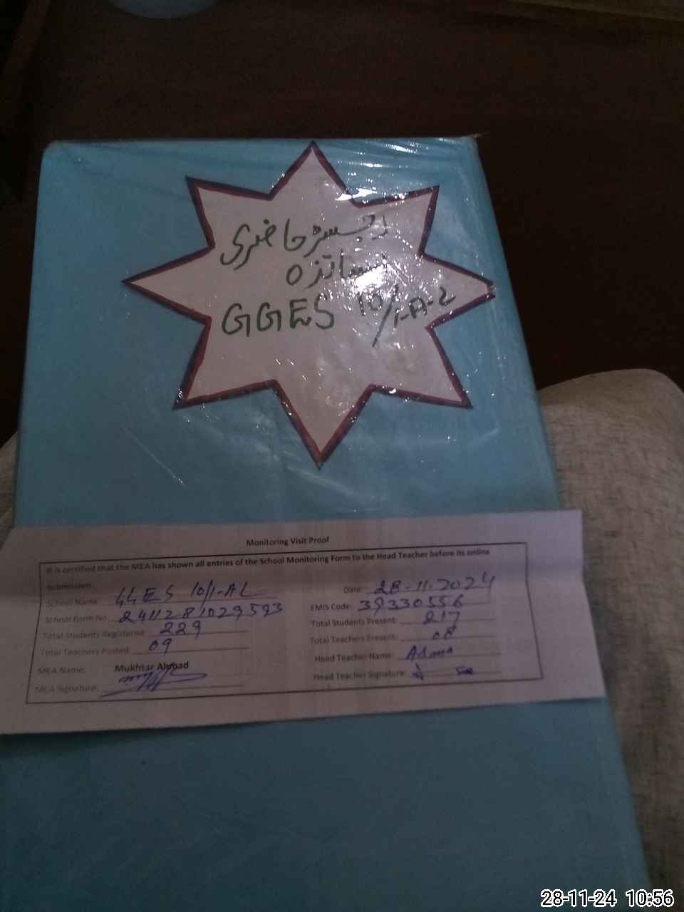 | Attendance Register | Head Teacher | MEA with School | Visit Proof |
