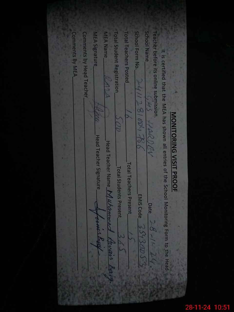 | Certified that this School was Inspected by the Undersigned MEA/DMO Today and the Information Stated Above is as Per Record. | |||||