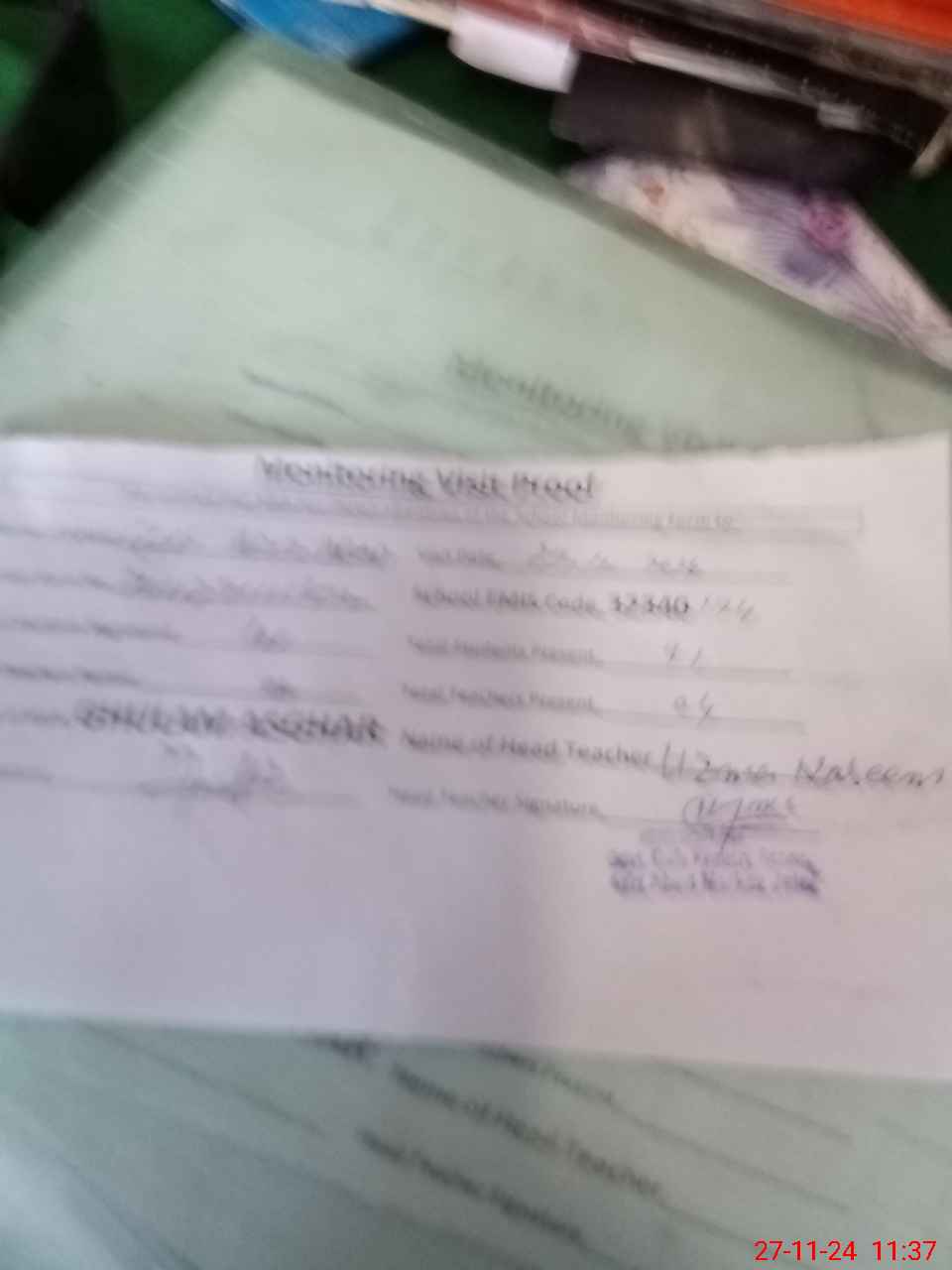 | Attendance Register | Head Teacher | MEA with School | Visit Proof |