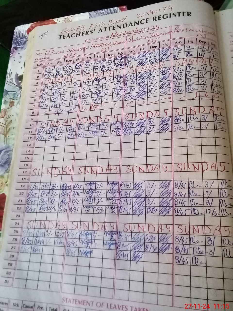 | CNIC | Full Name | Designation | R/C | Absence During Last Calender Month |