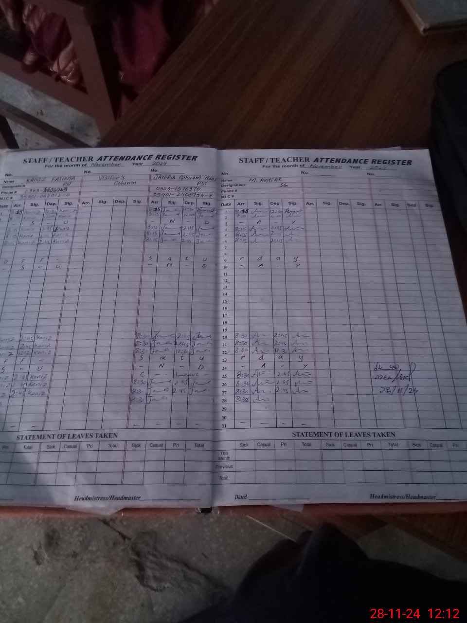 | Name: Ka**** Fa**** Designation: (School Headmaster's/Headmistress's) PST Phone/Cell Number: 03**** |