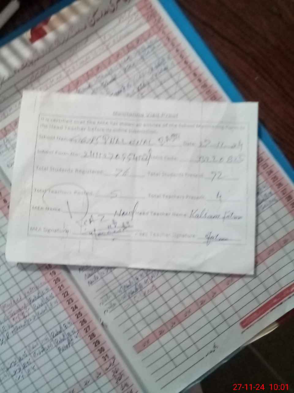 | Attendance Register | Head Teacher | MEA with School | Visit Proof |