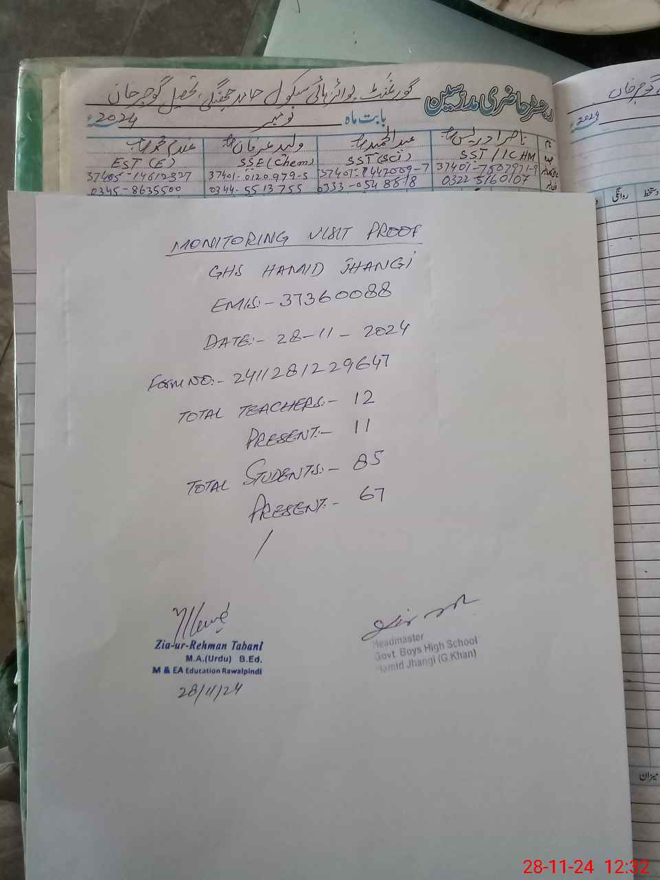 | EMIS Code: 37360088 | Name of School: GHS HAMID JHANGI | |||