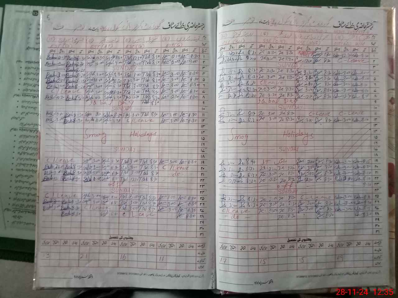 | Leave | Duty | Absent | Maternity | Medical | Ex- Pak |