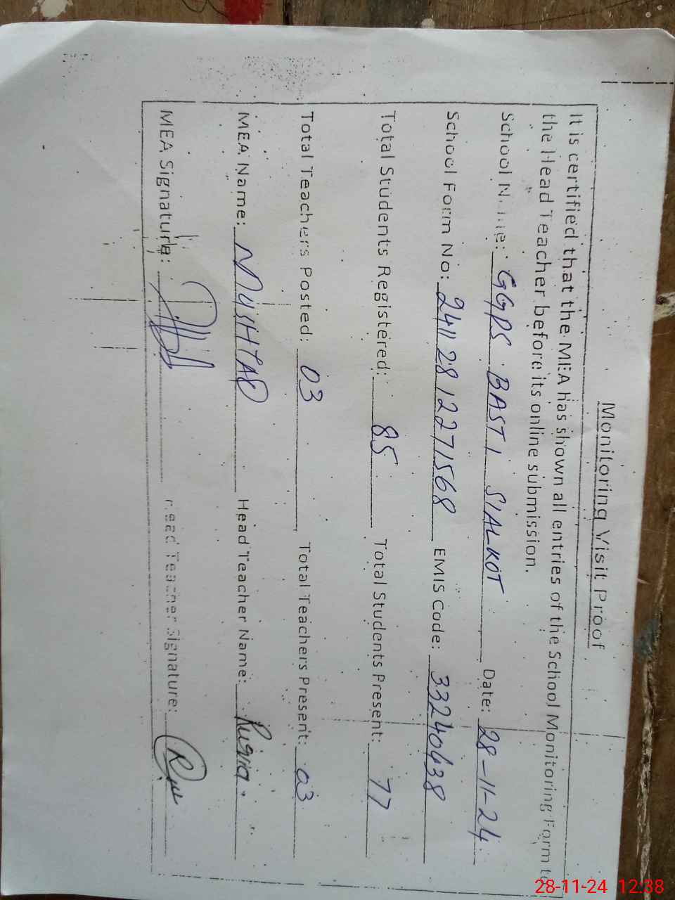 | EMIS Code: 33240438 | Name of School: GGPS BASTI SIALKOT | |||