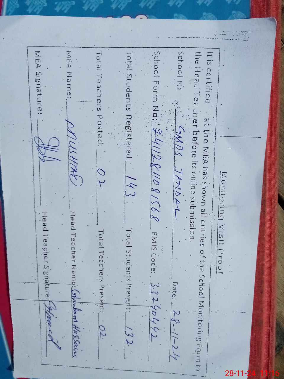 | EMIS Code: 33240442 | Name of School: GMPS JANDAL | |||