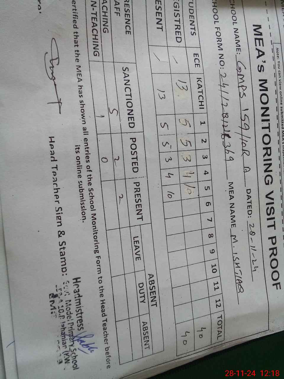 | EMIS Code: 36440513 | Name of School: GMPS 159-A/10-R, JAHANIAN | |||