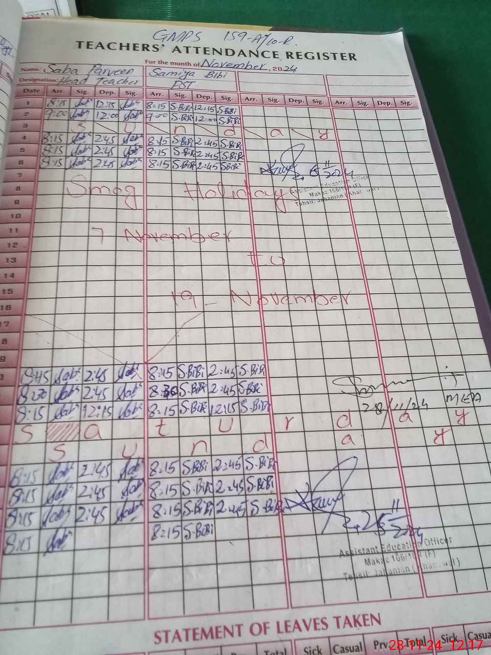 | Attendance Register | Head Teacher | MEA with School | Visit Proof |