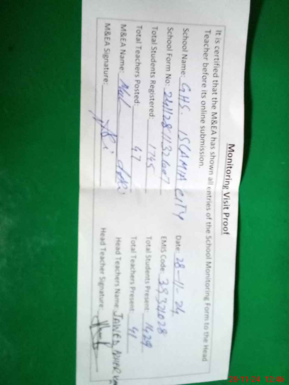 | EMIS Code: 39321028 | Name of School: GHS ISLAMIA OKARA CITY | |||