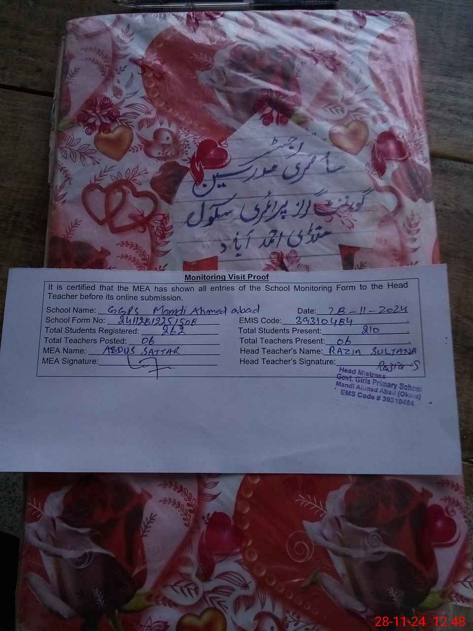 | EMIS Code: 39310484 | Name of School: GGPS MANDI AHMED ABAD | |||