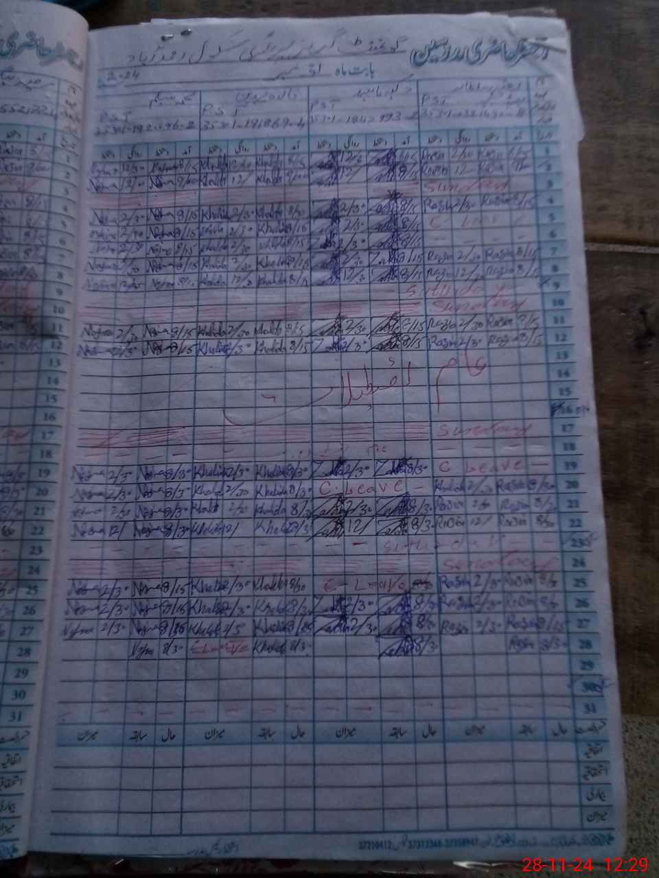| CNIC | Full Name | Designation | R/C | Absence During Last Calender Month |