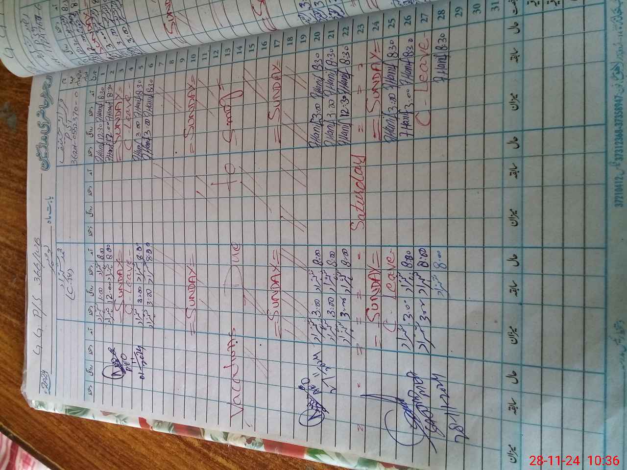 | 36**** | Ta**** Ak**** | PST | Regular | 4 | 0 | 0 | 0 | 0 | 0 | 0 | 0 | 4 | Casual |
