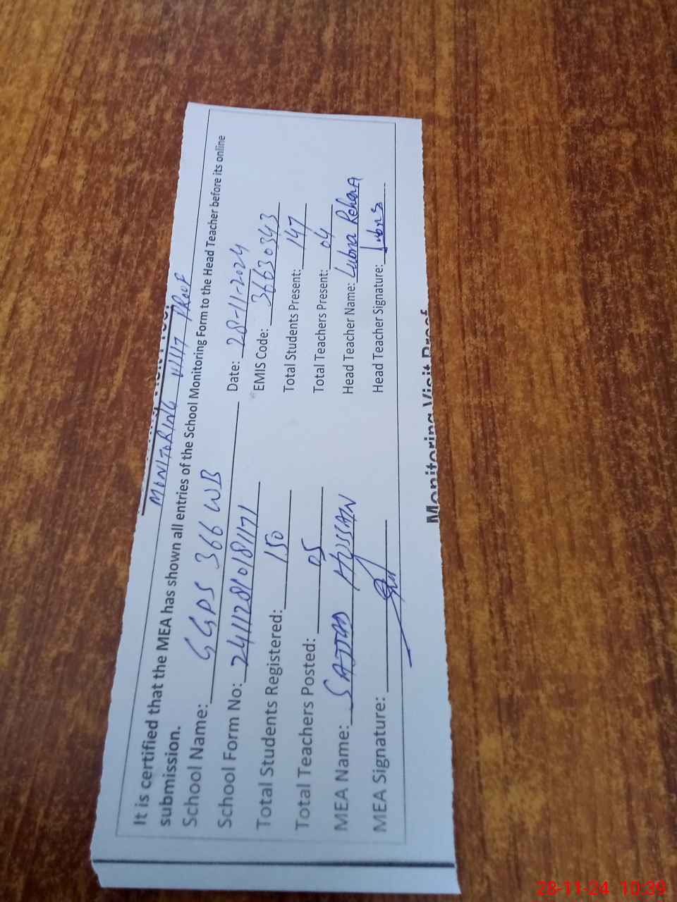 | EMIS Code: 36630343 | Name of School: GGPS 366/WB | |||
