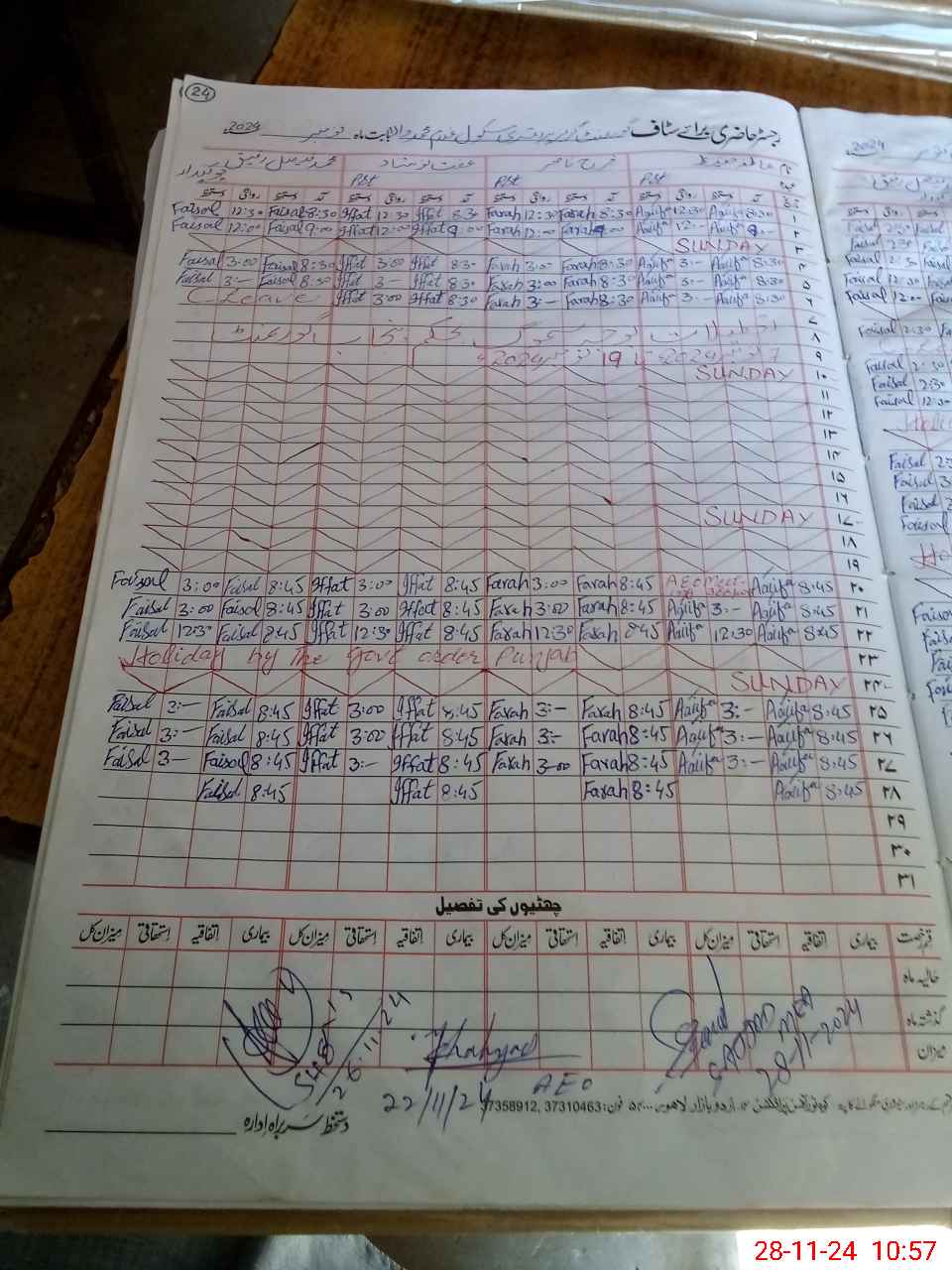 | CNIC | Full Name | Designation | R/C | Absence During Last Calender Month |