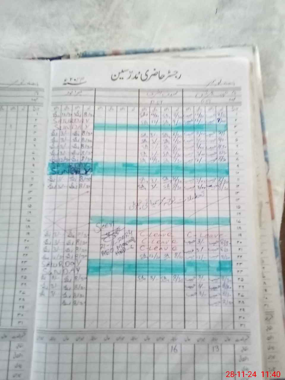 | CNIC | Full Name | Designation | R/C | Absence During Last Calender Month |