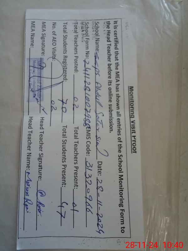 | EMIS Code: 31320966 | Name of School: GGPS BASTI ABDUL SATTAR (PSSP) | |||