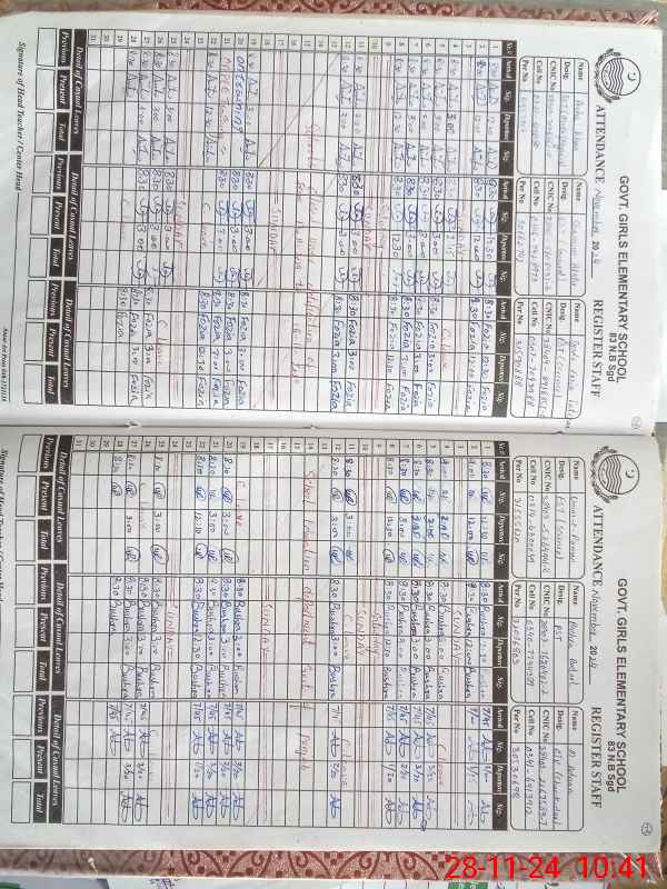 | CNIC | Full Name | Designation | R/C | Absence During Last Calender Month |