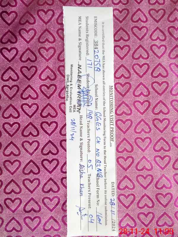 | EMIS Code: 38420758 | Name of School: GGES CHAK NO.83 NB | |||