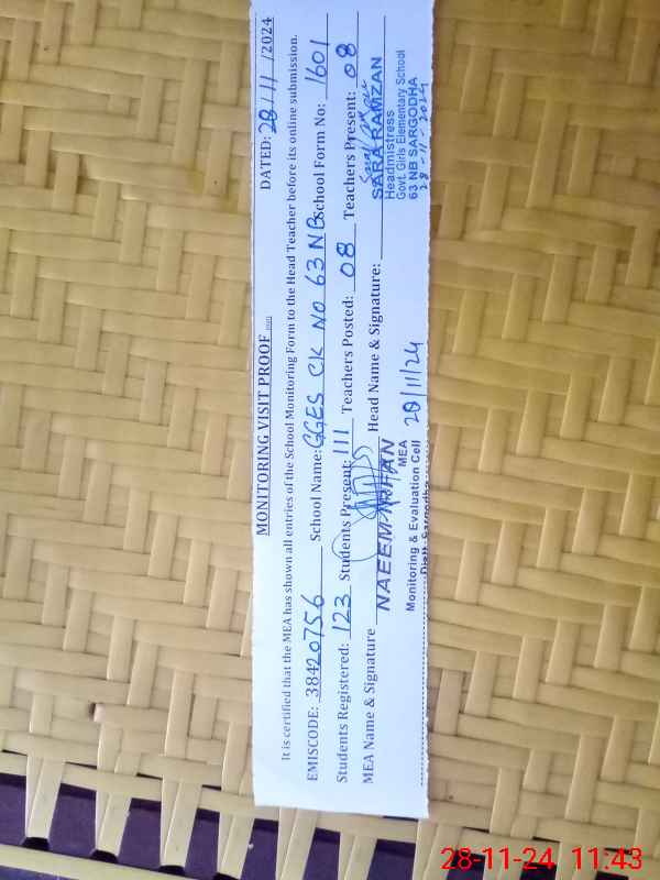 | EMIS Code: 38420756 | Name of School: GGES CHAK NO.63 NB | |||