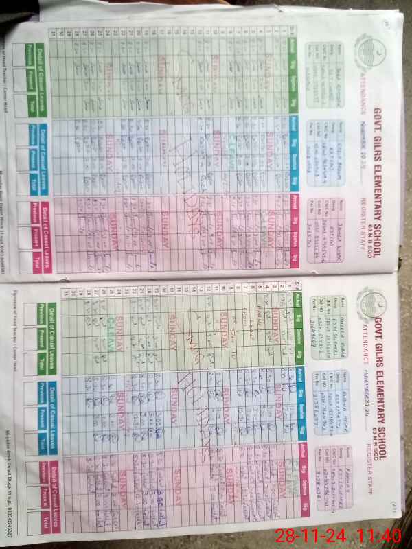 | CNIC | Full Name | Designation | R/C | Absence During Last Calender Month |