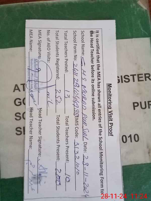 | EMIS Code: 31321010 | Name of School: GHS MURAD PUR SIAL | |||
