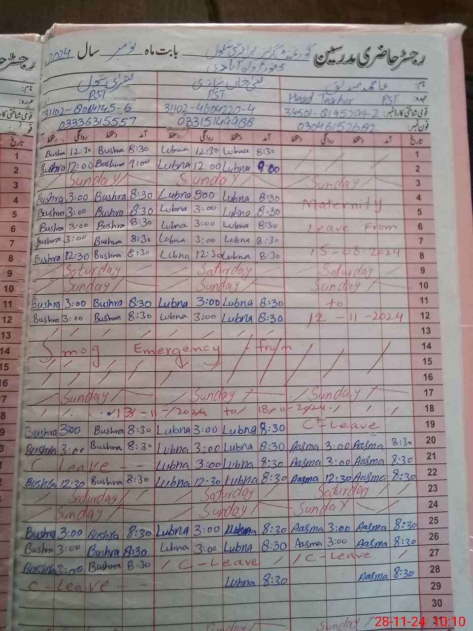 | Name: As**** Si**** Designation: (School Headmaster's/Headmistress's) PST Phone/Cell Number: 03**** |