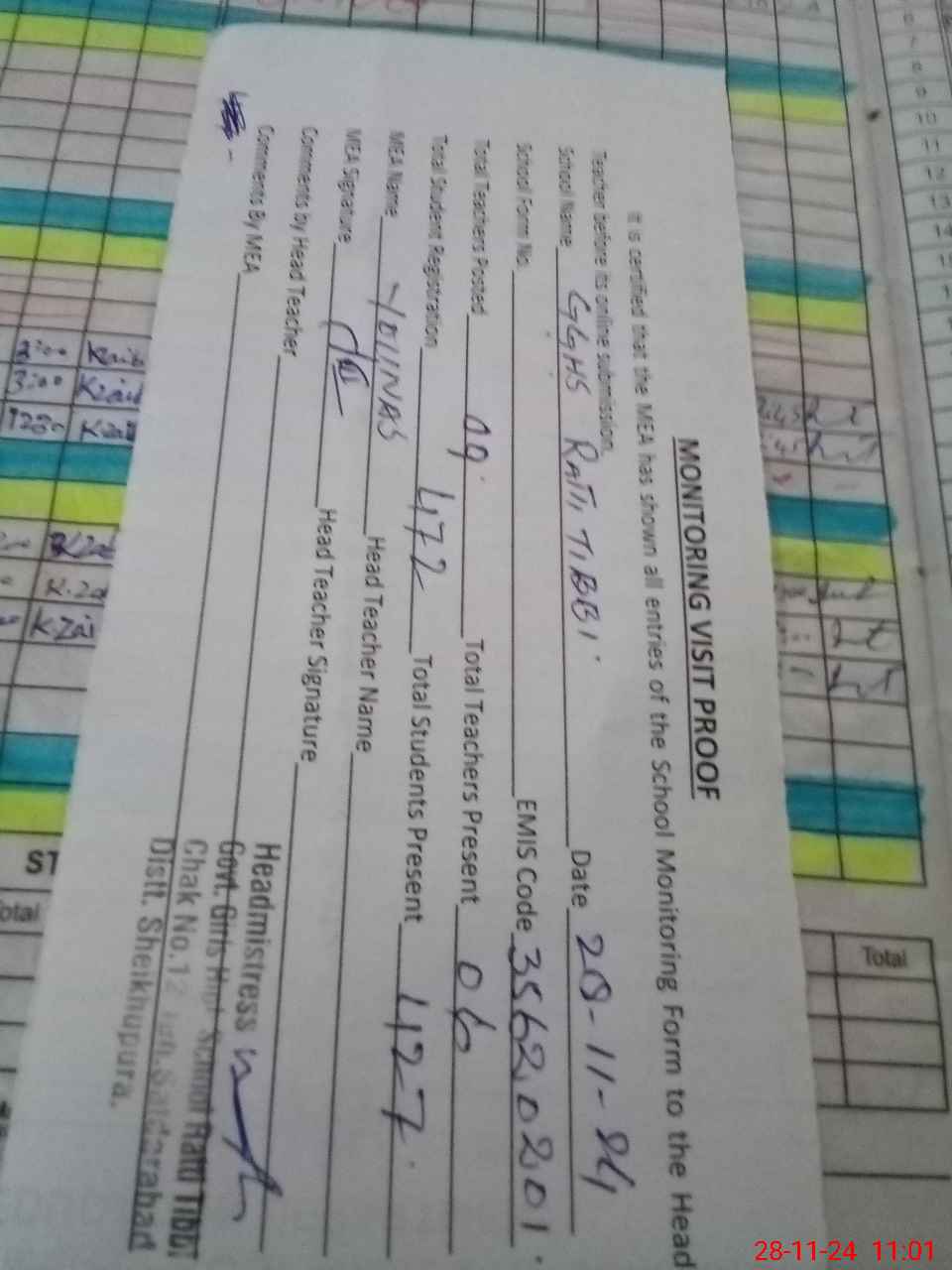 | EMIS Code: 35620201 | Name of School: GGHS RATTI TIBBI CHAK NO. 12/RB | |||
