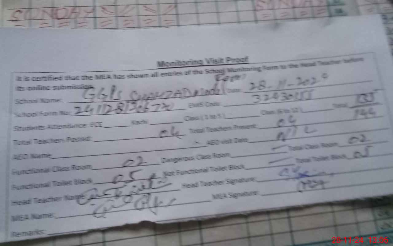 | EMIS Code: 32430155 | Name of School: GGPS SHAHZAD MODEL FARM | |||